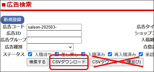 ・保存方法:広告入稿に入稿されてきた情報を入力してください。文字数オーバーした場合は元の情報を損なわない程度にうまい事削ってください。